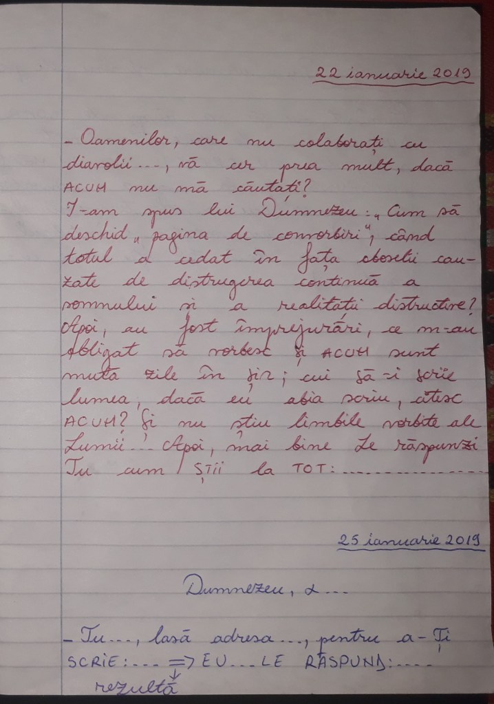I’ve told God: “How may I open the conversation page when all broke down in front of the tiredness caused by continuous destruction of sleep and the destructive reality? Then there were circumstances that forced me to talk and NOW I stand mute for days; to whom may the world write to if I barely write, read IN THIS TIMES? And I do not understand the talked languages of the world… Then, better You answer them as you KNOW at EVERYTHING: ______”.