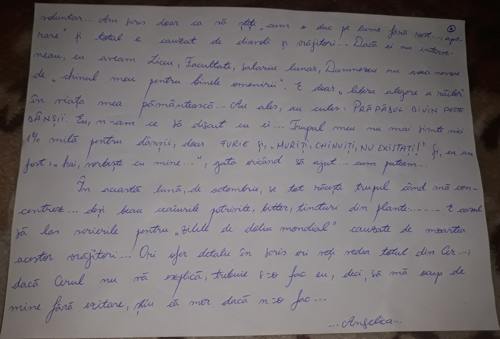 These pages I will offer to the readers someday… I will avoid begging for money, even involuntary… I wrote only in order for you to know how I live on this world meaningless… without defense and all is caused by the devils and sorcerers… If they would have not interfere I would have had High school, College, monthly salary, God would have not needed my ordeal for the good of mankind. It’s all about the free choice of the evils in my earthly life… They chose, they harvested: THE DIVINE WREAKING HAVOC ON THEM. I have nothing to discuss with them… My body feels not even 1% mercy for them, only ANGER and “DIE, SUFFER, DO NOT EXIST!”. I too was like: “Come on, talk to me…”, at any point ready to help… anyway I could…
