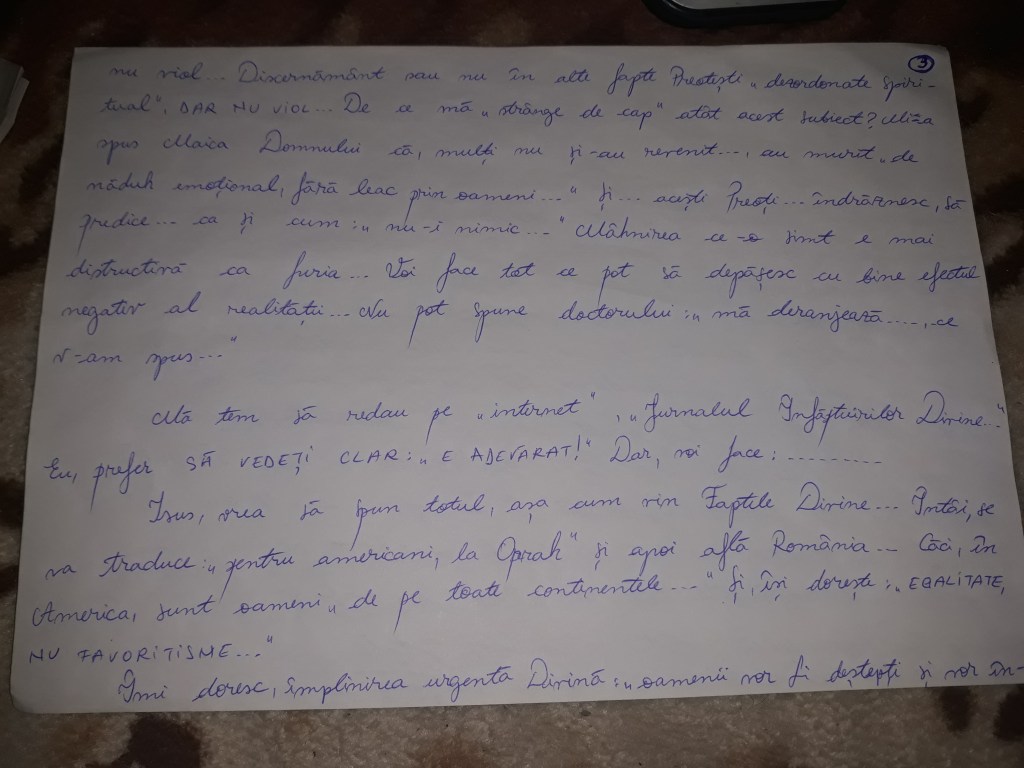 Jesus wants me to tell everything, in full compliance with the unfolding of the Divine Facts… First, it will be translated “for Americans, to Oprah” and after, Romania founds out… Because in America , there are people “from all continents”. And, He wishes: “EQUALITY, NOT FAVORITISM…”.