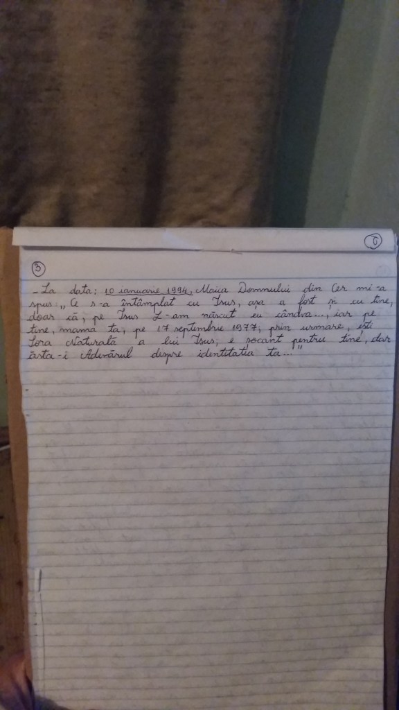 – At the date: January 10, 1994, the Mother of God from Heaven said to me: “What happened with Jesus, this happened with you too, only that I was the One that gave birth to Jesus once… and to you, your mother, on September, 17th 1977; therefore, you are the Natural Sister of Jesus; it is shocking for you, but this is the Truth about your identity…”